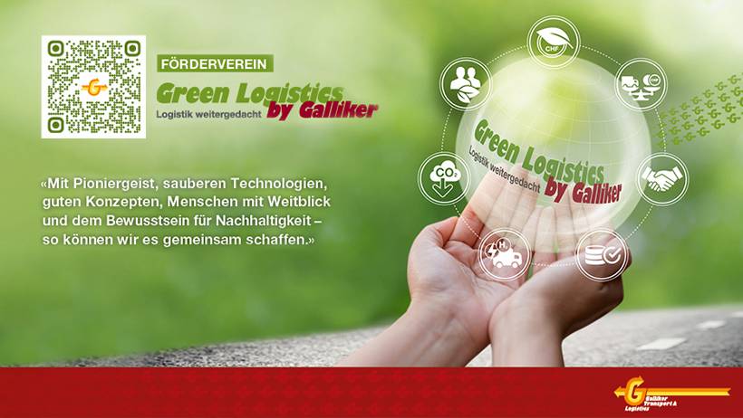 Depuis mars 2021, Connect Com SA est membre de l'association de soutien "Galliker Green Logistics". Nous investissons ainsi, avec notre principal transporteur, dans des camions neutres en CO2. Concrètement, les camions à moteur diesel sont remplacés par des véhicules à moteur électrique, à hydrogène ou à d'autres propulsions durables. Ceci sous la devise : "Ensemble, nous allons plus loin".
